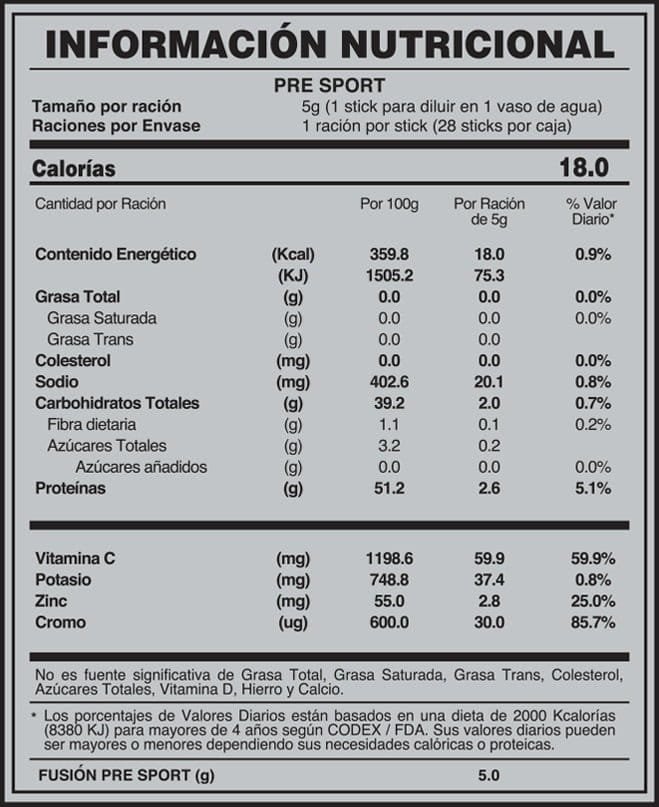 FuXion PRE-SPORT es una fusión nutra-céutica que posee los siguientes ingredientes naturales: